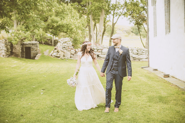 Det ser ut som den vakreste drøm, dagen i august da Linda & Thor giftet seg på en av de fineste stedene i hele Norge; Utstein Kloster på Mosterøy. Alt er så nydelig vakkert at superlativene på godt norsk ikke strekker til. Hvor begynner man, når man forelsker seg i alt. Brudens røde neglelakk, skoene er til å dø av, og vi elsker slike brude booties. Brudebuketten er som en varm sommerdag, med et slør av solens vakre lys. De duse pastellfargene matcher blomster-kransen i håret perfekt, og den vakre blondekjolen til Laura, fullfører boho vintage stilen helt komplett. Og ved hennes side en ulastelig antrukket brudgom, som må sies å være den kuleste norske brudgommen vi har publisert hittil i år. For en dress, for en gjennomført stil og for noen stilige farger. NWB digger blå dresser, sixpence, lommeur og tversoversløyfe. Og når stilen er gjennomført ned til minstemann i bryllup er det nesten mer enn enn hva hjertet klarer å begjære. Bruden har selv stått for all styling, og hun har gjort en utsøkt jobb. Den fantastiske Laura Vokey Photography, har fanget bryllupsdagen til Thor & Linda så nydelig som overhodet mulig. We love the softness and colors of her images - breathtakingly beautiful! Legg også merke til den utrolig vakre bryllupskaken fra Chelsea's Cool Cakes i deilig mint.