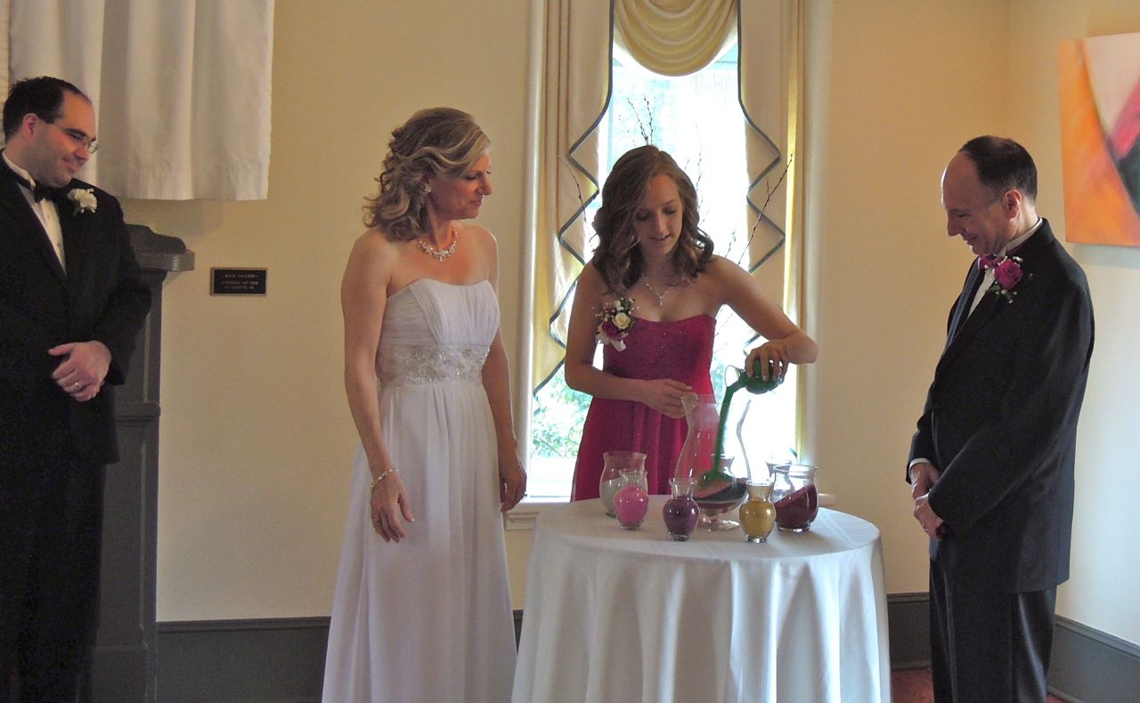 After we remembered their loved ones who have passed on by lighting a memory candle, talked about love and marriage and Cindy and Bob and their special relationship and they exchanged their secret vows, it was time for the family sand ceremony. First Bob and Cindy each poured in 1/2 of their sand individually making two layers.
