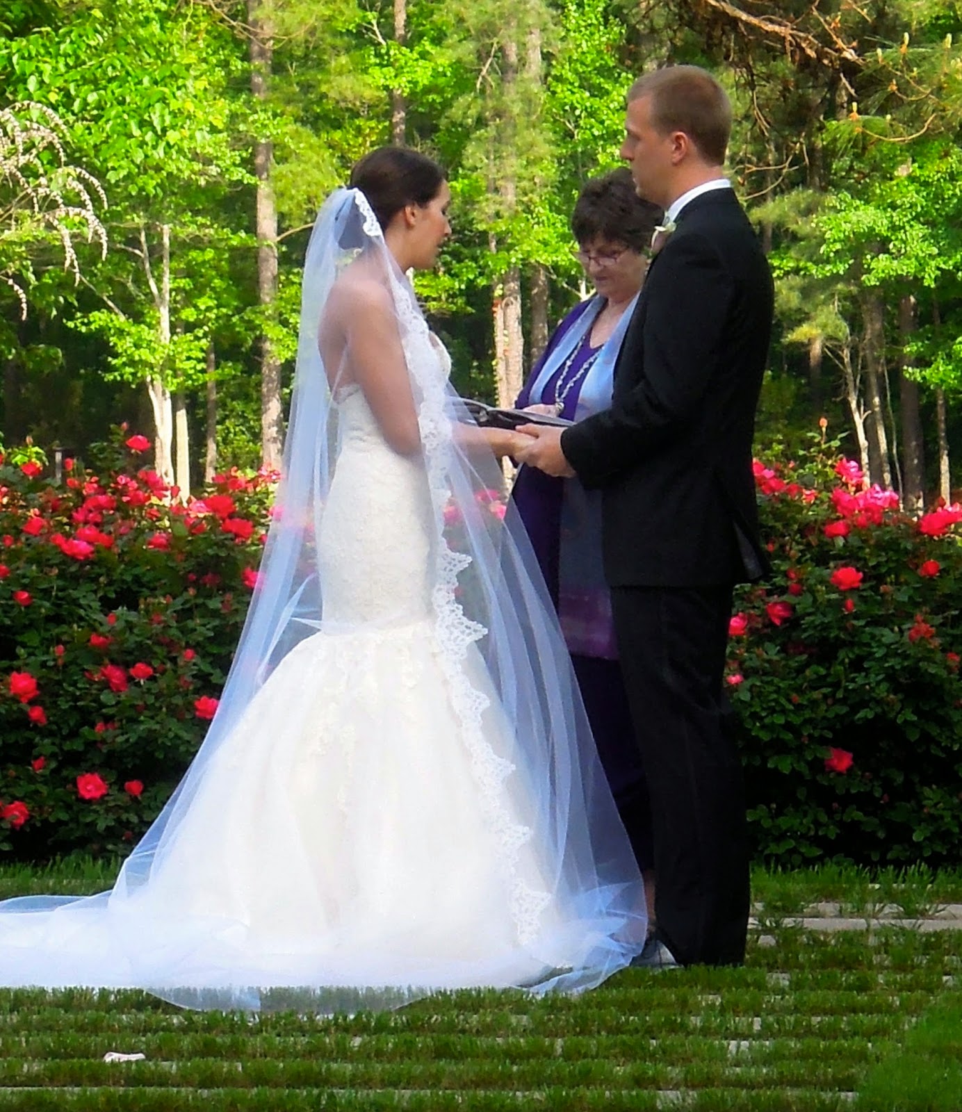 Time for the bride and her mother. Shannon's dad is no longer with us so her mother escorted her down the aisle. The wind has picked up a bit. That is Carrie Cassidy, Catering Manager for The Umstead acting as wedding director, straightening the veil which is the same one Shannon's mother wore for her wedding. Kelley Ann Ward, the event manager for The Umstead, has been out on maternity leave but is due back later this month.